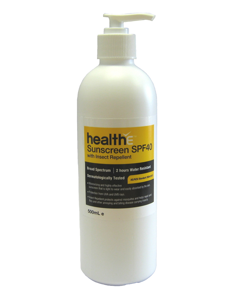 HealthE Sunscreen is a broad spectrum sunscreen designed to protect the skin from harmful UVB and UVA rays and also contains natural insect repellent made with a blend of essential oils containing citronella, tea tree and eucalyptus to protect against mosquitoes, sandflies and other biting insects.