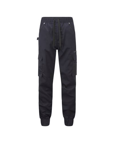Contemporary work pants made from highly durable ripstop fabric that stretches as you move. Subtle articulation on the knees allow for increased freedom of movement and a high rise back waistband ensures protection in all working positions. Packed with functionality including pre-bent knees, a crotch gusset, two tier knee pad pockets and an adjustable leg length for added convenience. Multi-functional thigh pockets provide secure storage of phones, pens and tools.