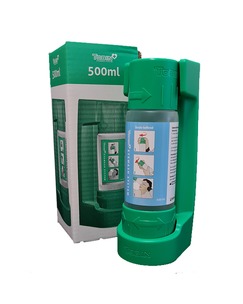 • 1 x  500ml buffer solution (borate-based eyewash), ideal for when space is a problem and/or eyewashes are required in a number of spots in the same area.