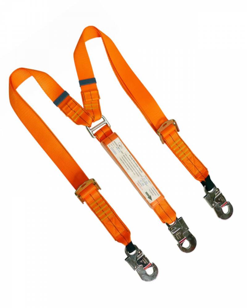 2m adjustable double leg shock absorbing lanyard with 3 double action hooks.
